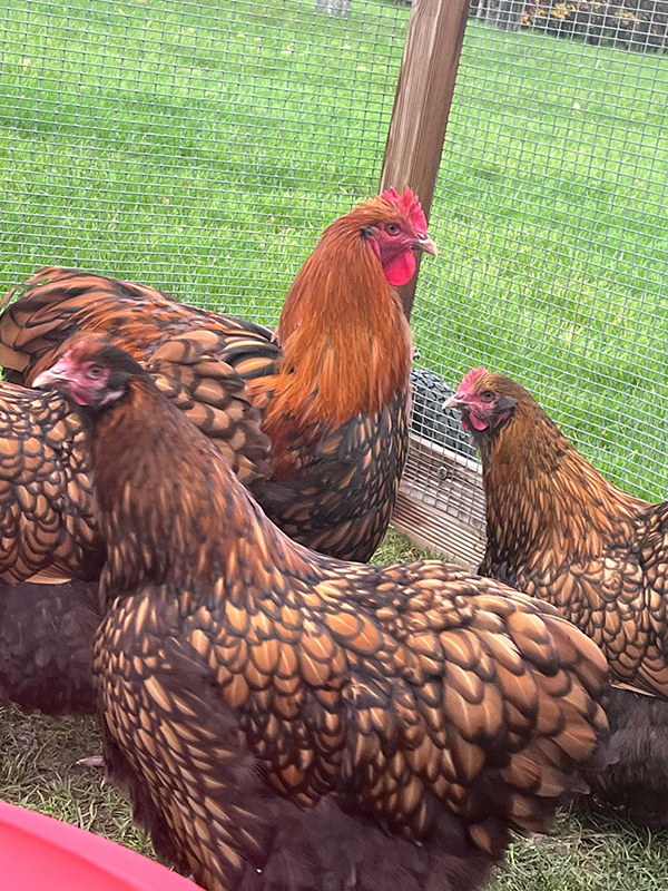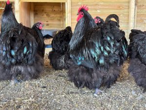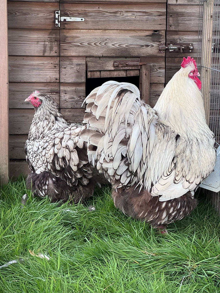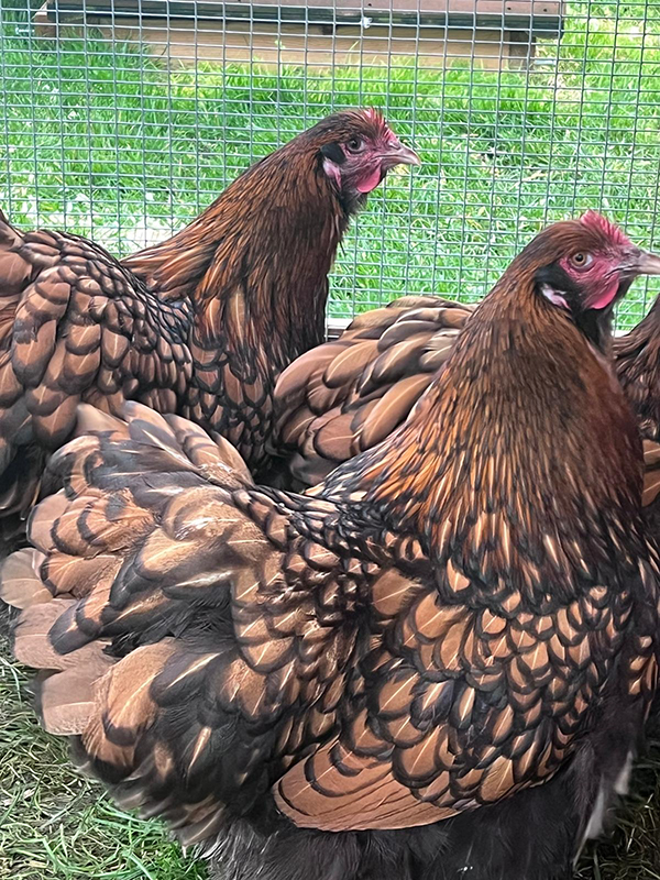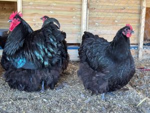 These are typically the same size as their buff Orpington relatives but have a distinct plumage. Gold in colour laced on the outside by a black line originally created by Jobst Veltheim in the early 1970s a great dual utility bird and good fertility rates. They are broad upright and graceful while remaining friendly. Our original stock came from two of the UK’s top breeders. We are now 2 or 3 generations on from there